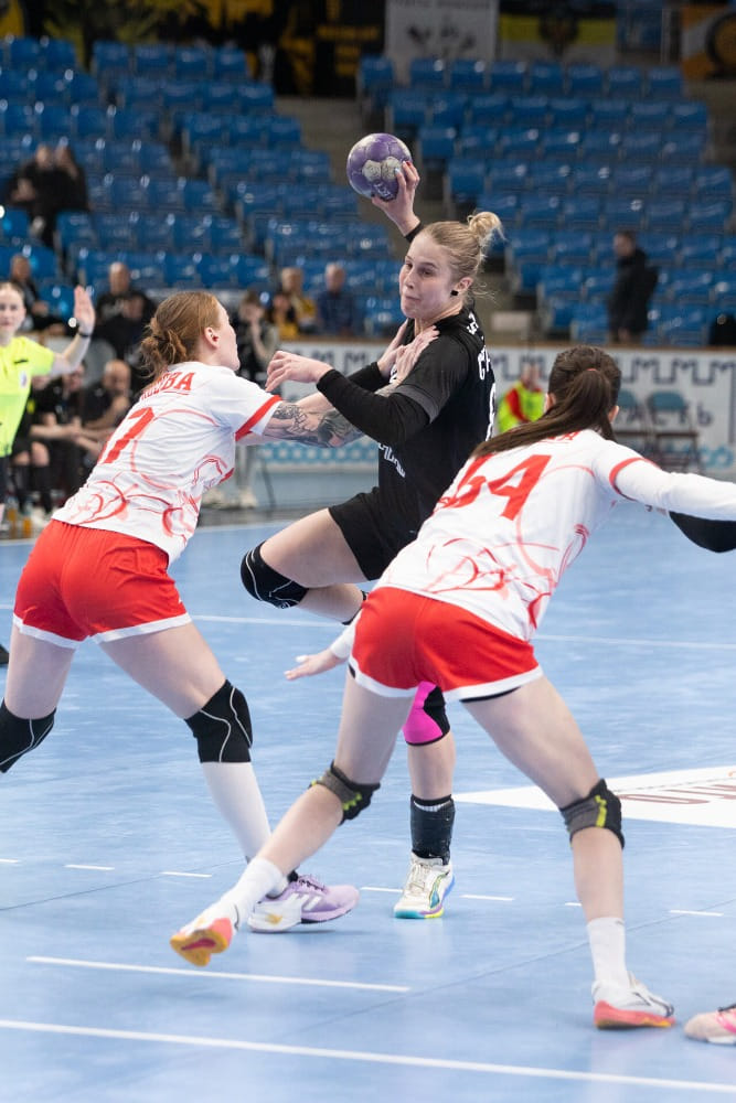 В середине второго тайма хозяйки смогли оторваться на четыре точных броска. Но удаление получила Дудина, после чего ростовчанки, имеющие большинство, пару раз перехватывают мячи и забрасывают в пустые ворота, затем уже в равных составах сравнивают и счет.