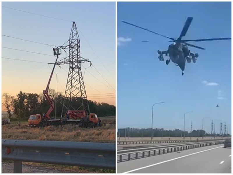 Пролетавший здесь военный вертолет Ми-28 перерубил винтом провода высоковольтной линии электропередачи. Уже на земле перерубленные провода загорелись и подожгли сухую листву. Однако с огнем справились быстро. Спасибо оперативности, проявленной работавшими неподалеку дорожными рабочими.