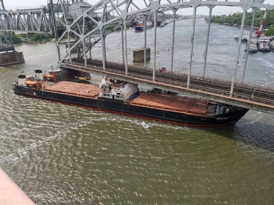 По данным информационного портала РБК со ссылкой на региональное управление МВД на транспорте, сегодня утром, около 11.00, универсальный сухогруз «Зеленга», следовавший из Ростова в Керчь, вместо того чтобы пройти под поднятым для того пролетом «американского моста», резко ушел влево. И, попав на мелководье, буквально уткнулся в опору низкого неразводного пролета. В результате такого навала судно получило механические повреждения.