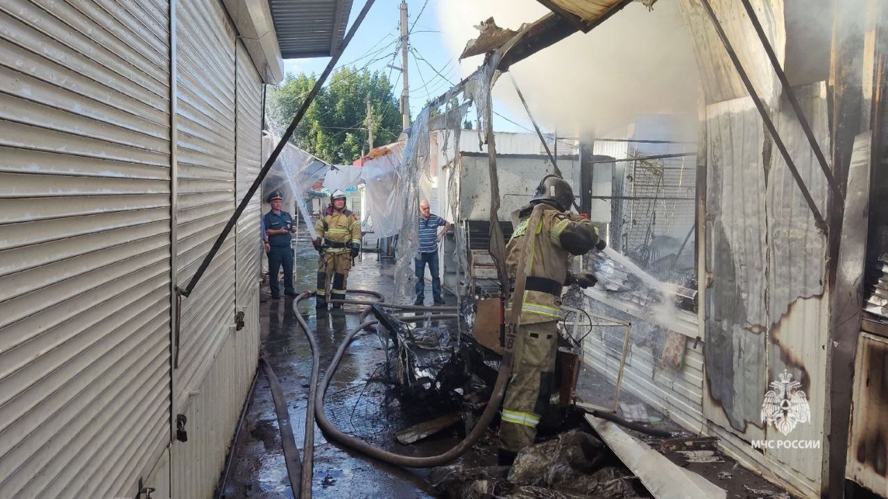 В Торговом проезде загорелись четыре павильона. Пожарные среагировали оперативно и буквально за 20 минут ликвидировали огонь на площади 120 квадратных метров, не дав ему перекинуться на соседние торговые ларьки.