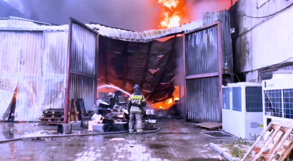 В центре грандиозного пожара. Рухнула крыша горящего склада.. Источник фото: скриншот видеосъемки ГУ МЧС по Ростовской области.: