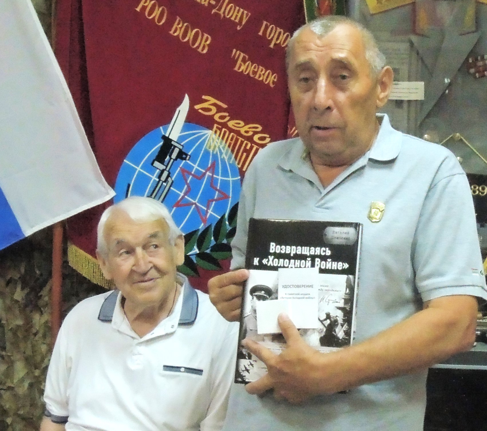 Сегодня в центре ветеранов боевых действий они собрались под флагом «Боевого братства» по приглашению Виталия Шевченко, который возглавляет региональную общественную организацию ветеранов «Дунай-68». Сегодня же состоялись презентация его книги «Возвращаясь к холодной войне», вручение собравшимся памятных знаков «Ветеран холодной войны».