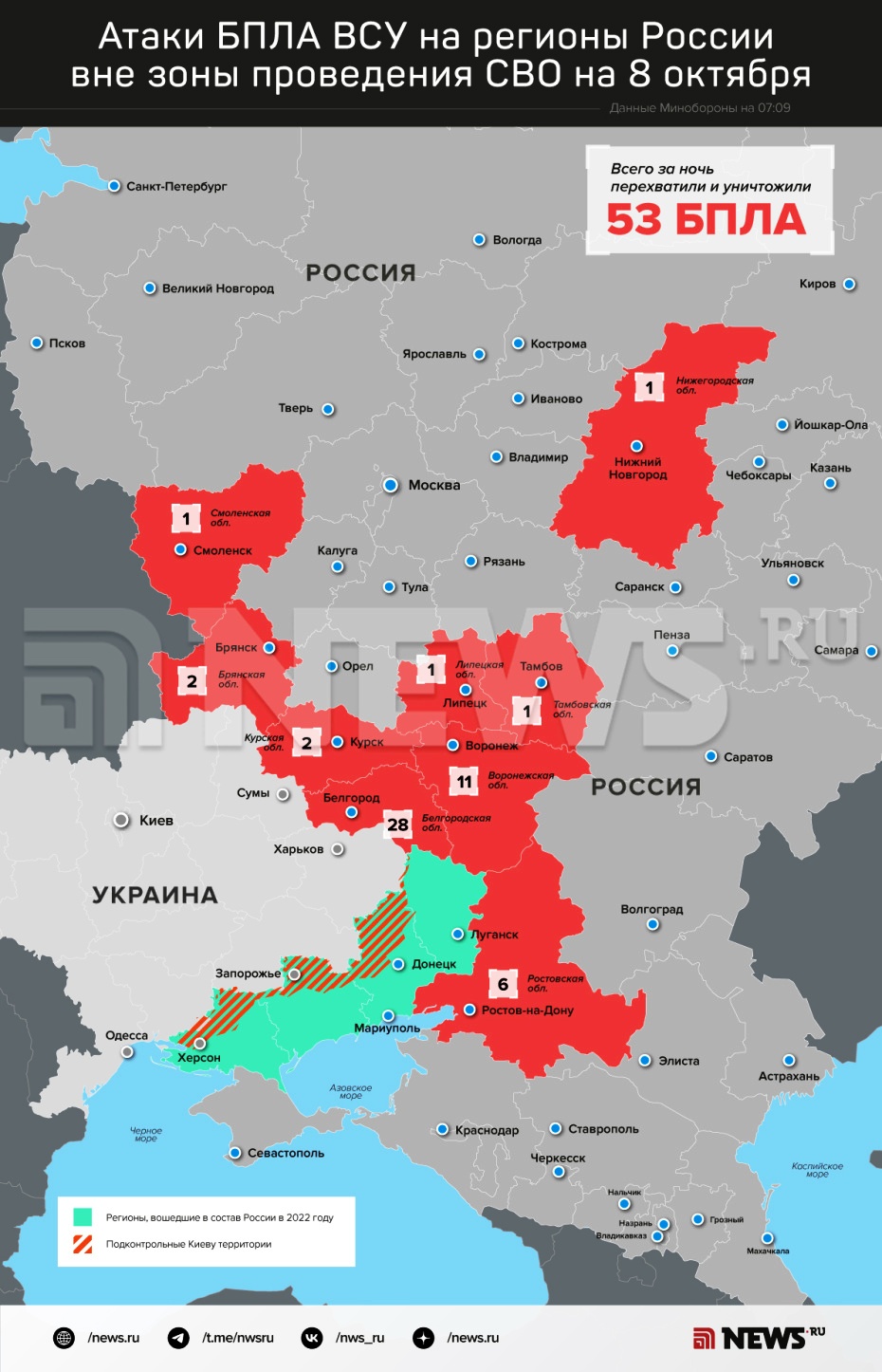 Отметим, что последний по времени украинский налет на Ростовскую область был произведен вчера ночью. В ночь на 7 октября три беспилотника попытались атаковать Шолоховский район, но были сбиты.