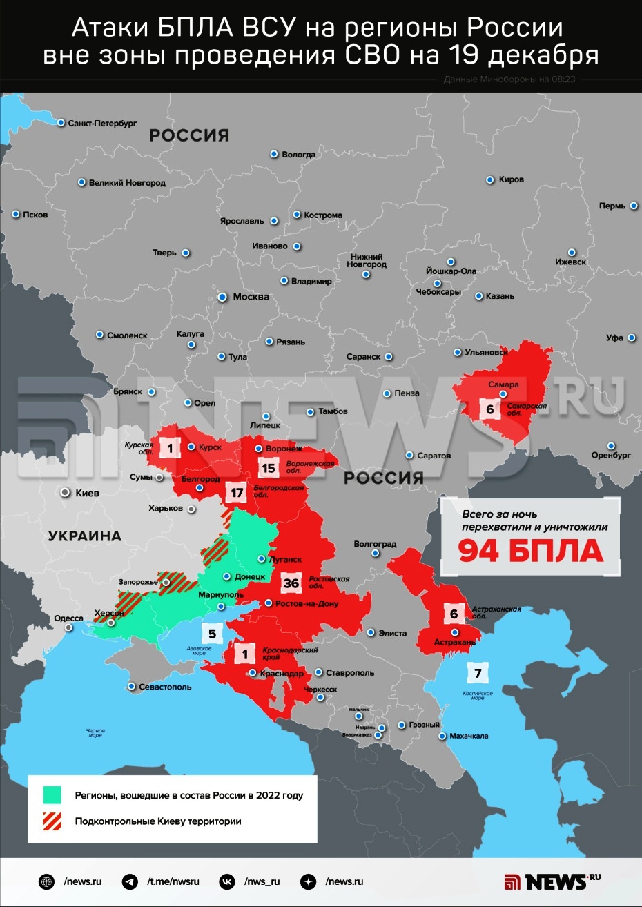 Было бы удивительно, если бы Киев не активизировался и не попытался бы ударить как можно сильнее по гражданским объектам на территории России как раз накануне подведения итогов года президентом России. Такое просто не в манере тамошнего террористического режима. И бандеровцы остались верны себе. Вот и дроны при поддержке НАТО используют все более и более современные – высокоскоростные реактивные. Ими они уже успели атаковать Ростовскую область. Хотя, как и прежде, вряд ли смогут извлечь из этого соответствующие затратам дивиденды.