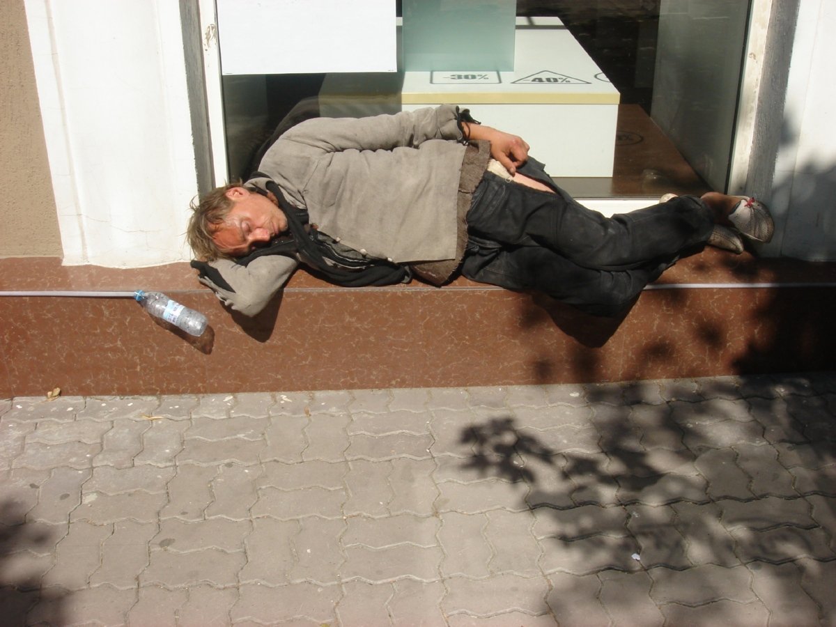 Прохожие не без иронии и сарказма поглядывают на них – либо переусердствовавших со спиртным, либо по стечению каких-то обстоятельств оказавшихся в таком месте и в таком виде. Иными словами - временно на обочине жизни.