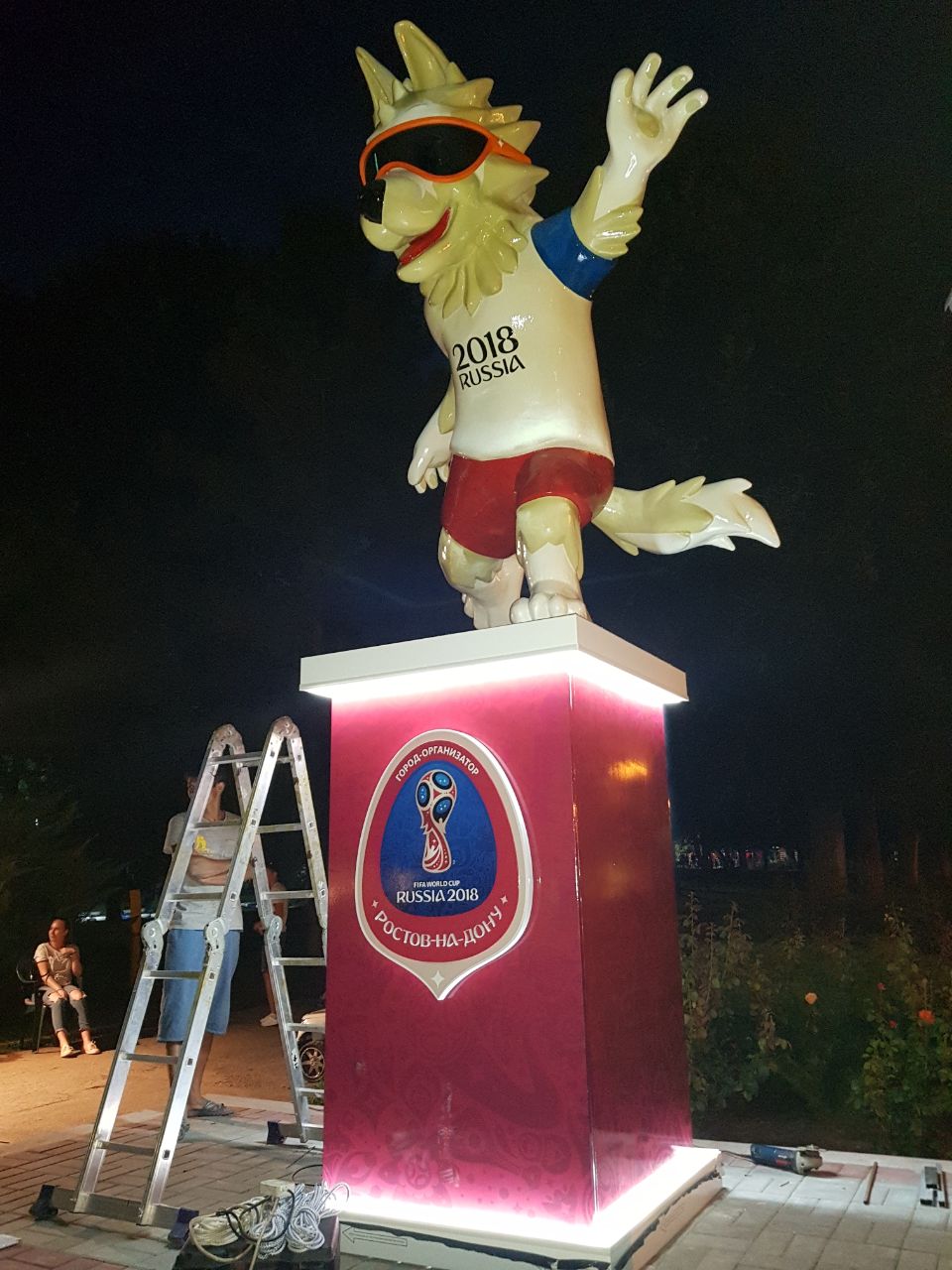 Парк Революции установил первую и единственную в городе объемную фигуру волчонка Забиваки - символа чемпионата мира по футболу 2018.