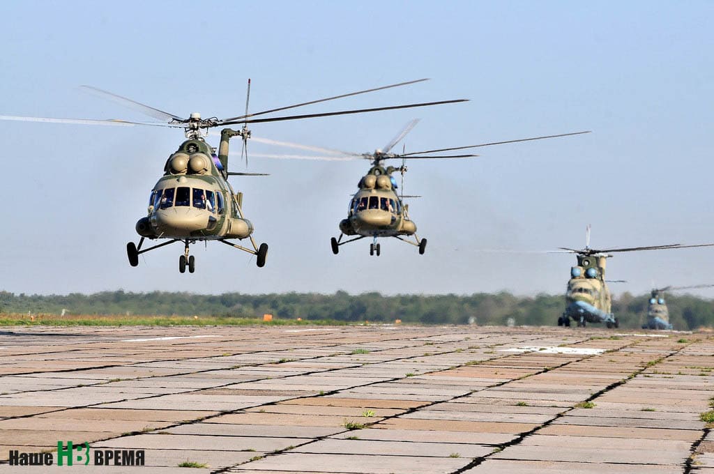Ранним утром экипажи винтокрылых боевых машин начали подготовку своих Ми-8 АМТШ «Терминатор» и Ми-28Н «Ночной охотник» к вылету. В ходе подготовки к дальнему перелету летчики и техники подвесили ракетно-пушечное вооружение, после чего вертолетчики отработали поставленные командиром задачи вывода аэродрома базирования из-под удара авиации условного противника, в том числе и ракетного. Прикрытием авиабазы с воздуха занималось дежурное звено Ми-28Н. Выполнив на месте поставленные задачи, вертолеты взяли курс к месту проведения учений.