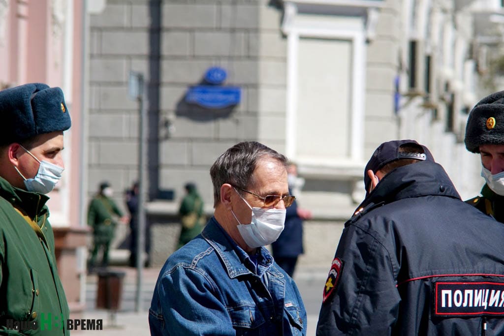 Докладываем: патрулей на улицах Ростова действительно стало больше. На углу проспекта Ворошиловского и ул. Большой Садовой у металлического ограждения идет проверка документов у тех, кто во время режима самоизоляции оказался на улице.