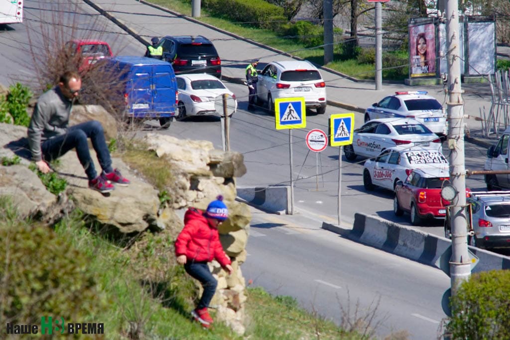 А сверху, от памятника участникам Стачки 1905 года, пробираются папа и сын. На своих двоих. Магазина в шаговой доступности рядом нет. Что заставило нарушить режим самоизоляции? Хотелось бы верить, что причина – уважительная…