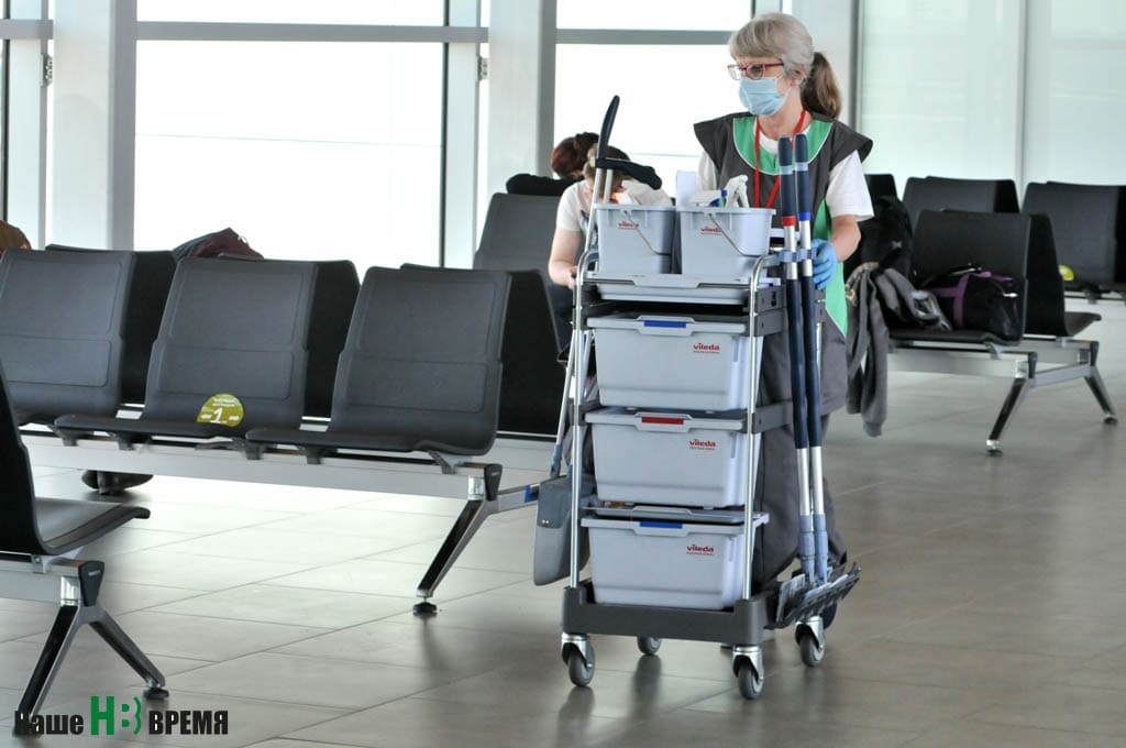 Аэропорт разделен на зоны: «грязная» зона – зал прилета, «чистая» - зал внутренних вылетов. Санобработки проводятся в постоянном режиме.