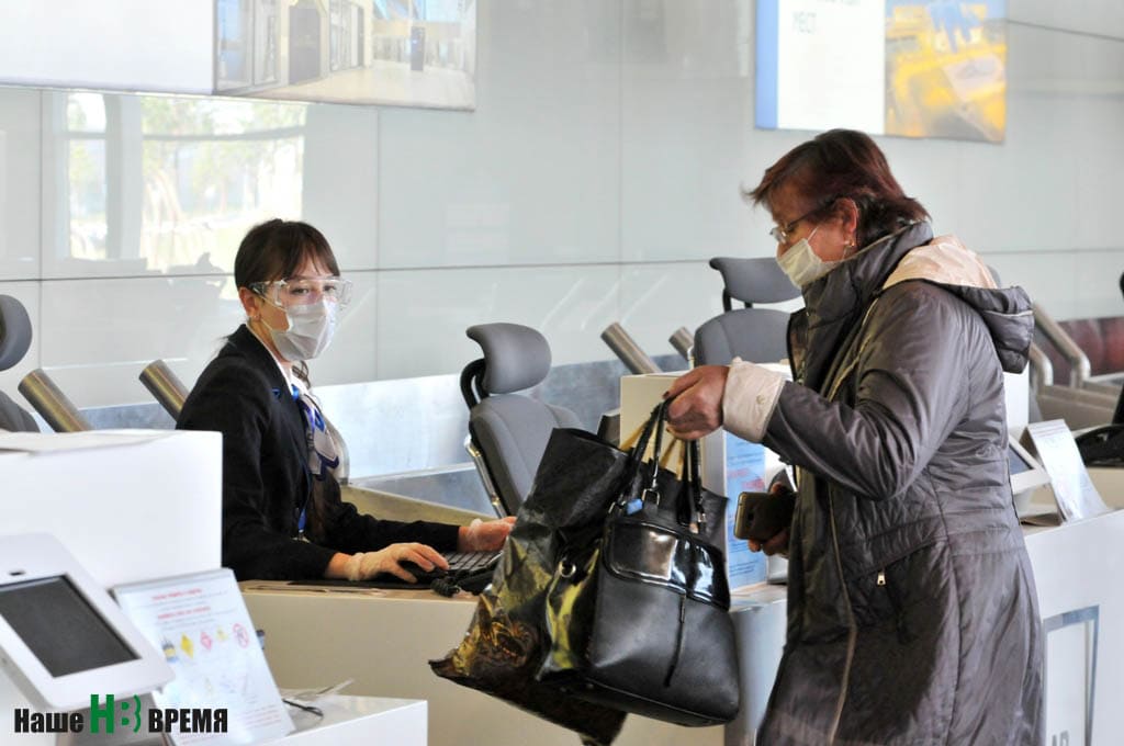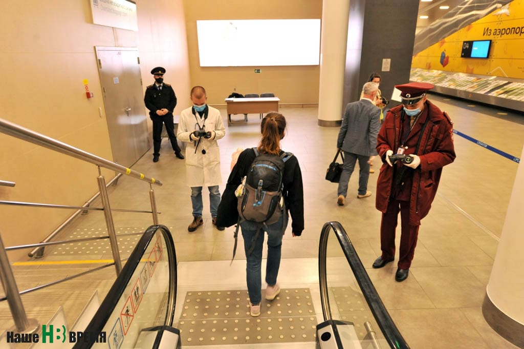 Повышенная санитарная безопасность – в зале выдачи багажа. Здесь с прибывающими пассажирами работают сотрудники Роспотребнадзора.