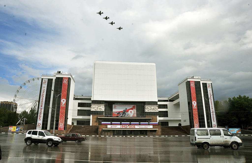 По окончании церемонии возложения состоялся авиапарад, на котором летчики 4-й армии ВВС и ПВО Южного военного округа показали возможности современной воздушной техники. Над Театральной площадью пронеслись тяжелый многоцелевой транспортный вертолет Ми-26Т, звено транспортно-боевых вертолетов Ми-8АМТШ, боевые Ми28-Н «Ночной охотник», звено вертолетов огневой поддержки Ми-35, ударных Ка-52 «Аллигатор», самолеты Л-410 и транспортный Ан-26, знаменитые «Грачи» и истребители Су-30 СМ. Всего в авиапараде участвовало 45 вертолетов и самолетов, что символизирует год окончания Великой Отечественной войны. Жители города могли наблюдать за прохождением авиатехники из окон и балконов своих квартир.