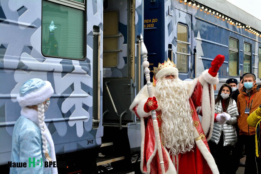 На станции Ростов-Главный уже с самого утра начался праздник. И Деда Мороза со Снегурочкой, и ребят с родителями встретили песнями и танцами творческие коллективы.