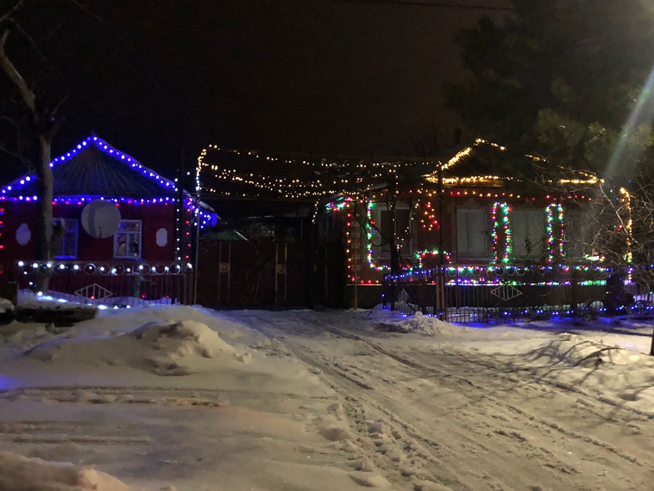 Из села Натальевка мы получили очень трогательную фотографию двух крестьянских подворий, которые в новогодние праздники по вечерам выглядят, как сказочные замки. Тут сразу видно, что живут соседи дружно, один от другого отставать не хотят.