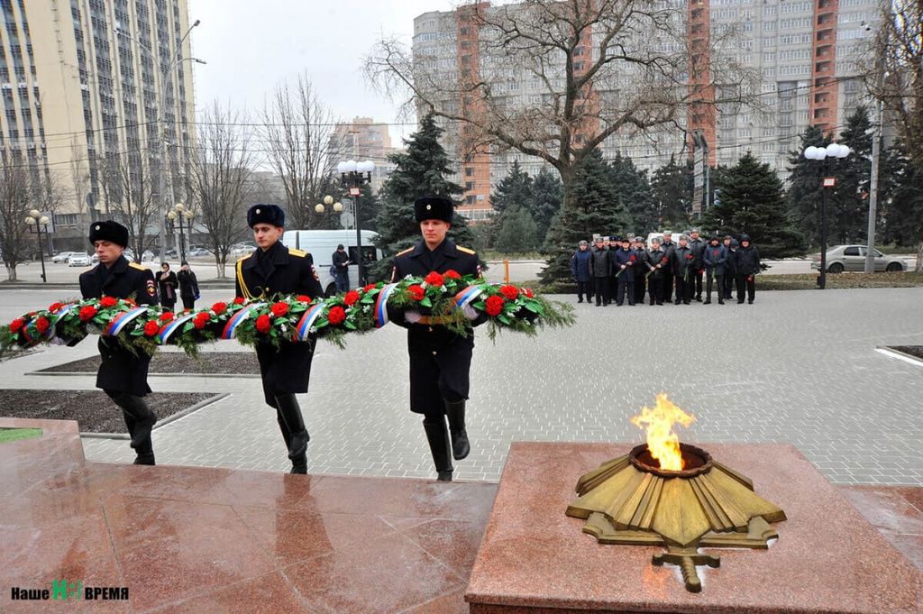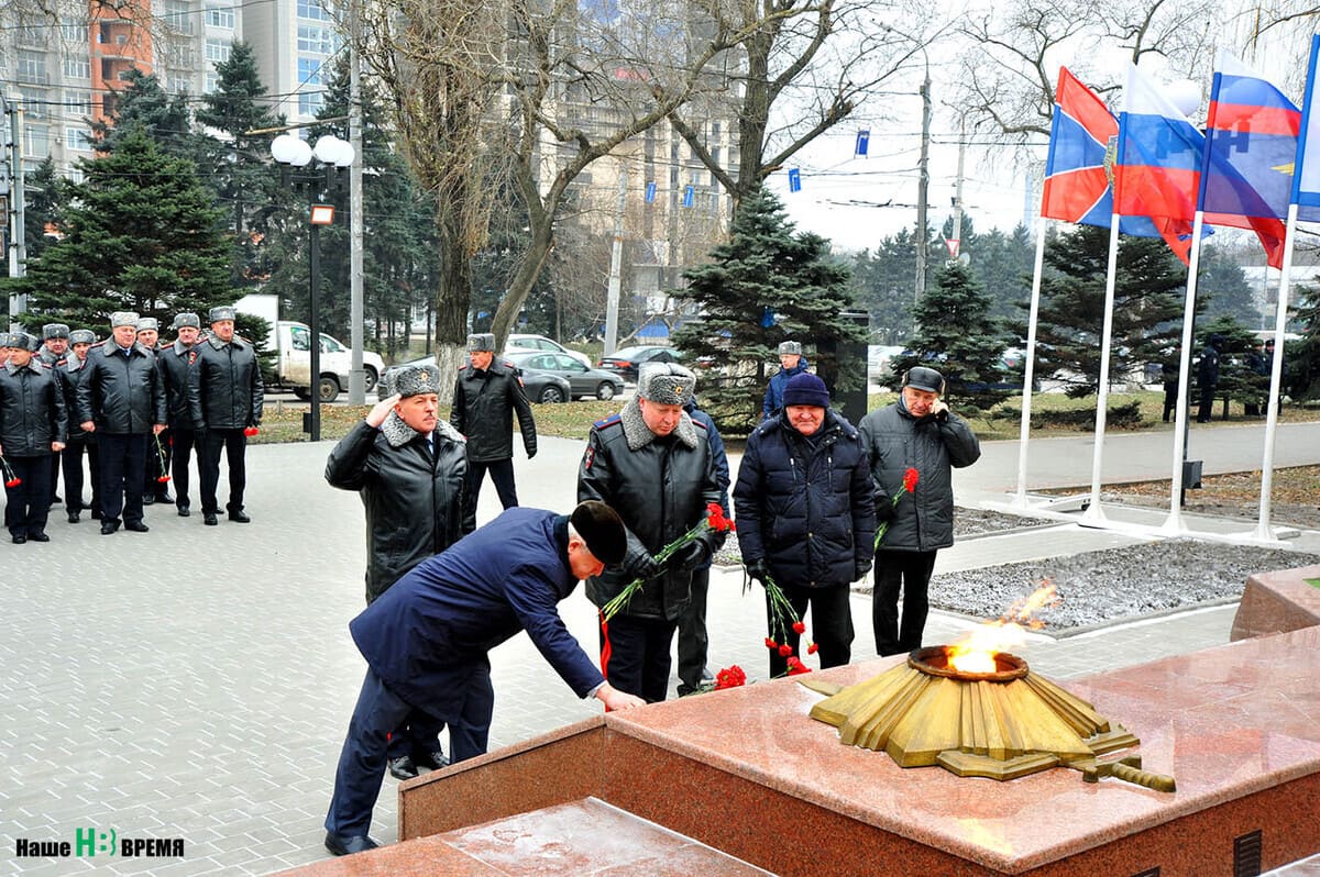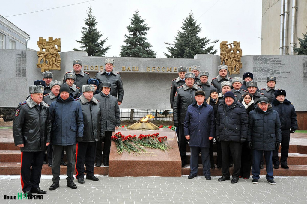 Присутствующие на открытии обновленного мемориала: начальник ГУ МВД России по Ростовской области генерал-лейтенант Олег Агарков, заместитель начальника донского главка МВД генерал-майор внутренней службы Алексей Тимофеев, открывший этот памятник 27 лет назад генерал-лейтенант милиции в отставке Михаил Фетисов, председатель ветеранской организации полковник полиции в отставке Валентин Самсонов, руководители и сотрудники подразделений областного полицейского главка, ветераны органов внутренних дел, члены клуба "Милицейские генералы Дона", руководитель благотворительной организации, которая оказала помощь в реставрации памятника Юрий Авдеев, возложили цветы к мемориалу, а также почтили минутой молчания павших героев, заплативших своими жизнями за порядок и безопасность на донской земле.