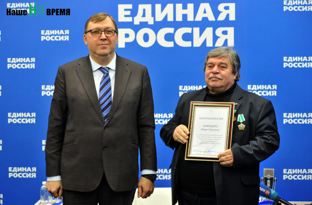 Так, благодарность председателя «ЕР» и зампредседателя Совета безопасности России Дмитрия Медведева под аплодисменты была вручена Игорю Блиджяну. Руководителя регионального отделения Всероссийской общественной организации ветеранов «Боевое братство» знают практически все, кто связан с передачей гуманитарной помощи и оборудования как жителям Донбасса, так и на передовую.