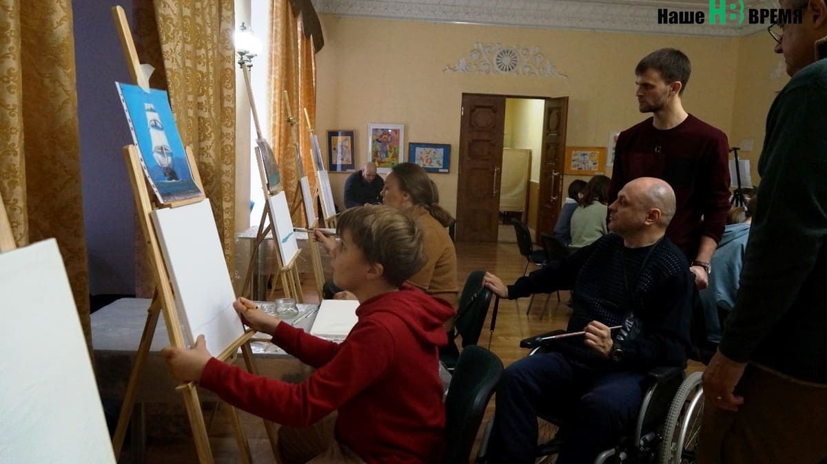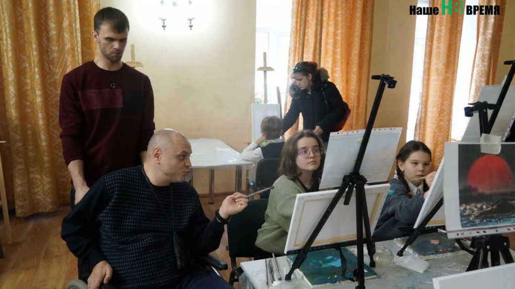 И именно поэтому ребята, которые пришли вчера в городской дом творчества на урок живописи, получили не только толику знаний о техниках выполнения рисунков, колористике и других важных для начинающих художниках моментах. Но и понимание факта: человек с «ограниченными возможностями движения», как официально звучит статус Александра, ни в коей мере не ограничен ни в творчестве, ни в его реализации.