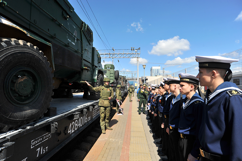 Над перроном разливается музыка – выступают творческие коллективы Минобороны России. В их исполнении звучат знаменитые песни: «Марш авиаторов», «Три танкиста», «Синий платочек», «Песенка фронтового шофера», «В путь», «Дорога на флот»...