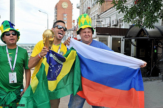 В день первого на донской земле матча ЧМ-2018 губернатор Василий Голубев встретился с болельщиками из Бразилии и Швейцарии, прилетевшими в Ростов.