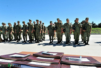 На полигоне Кадамовский (п. Персиановский Ростовской области) в 150-й мотострелковой дивизии ЮВО в торжественной обстановке механикам-водителям вручили символические ключи от танков Т-72Б3 и боевых машин пехоты БМП-3.