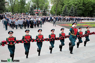 В донской столице стартовали торжества по случаю 73-й годовщины Победы. Утро 8 мая началось с торжественной церемонии возложения гирлянды Славы к мемориалу «Павшим воинам» в ростовском парке имени Фрунзе.