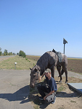 На въезде в Белокалитвинский район и на обратной дороге, когда покидали этот гостеприимный казачий край, видели очереди на обочине у Поклонного креста и у конной скульптуры.