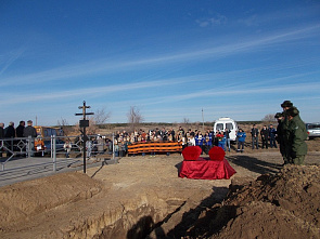 У воинского мемориала в хуторе Красный Яр Калитвенского сельского поселения Каменского района после отпевания в храме прошла церемония захоронения останков четырех советских бойцов.