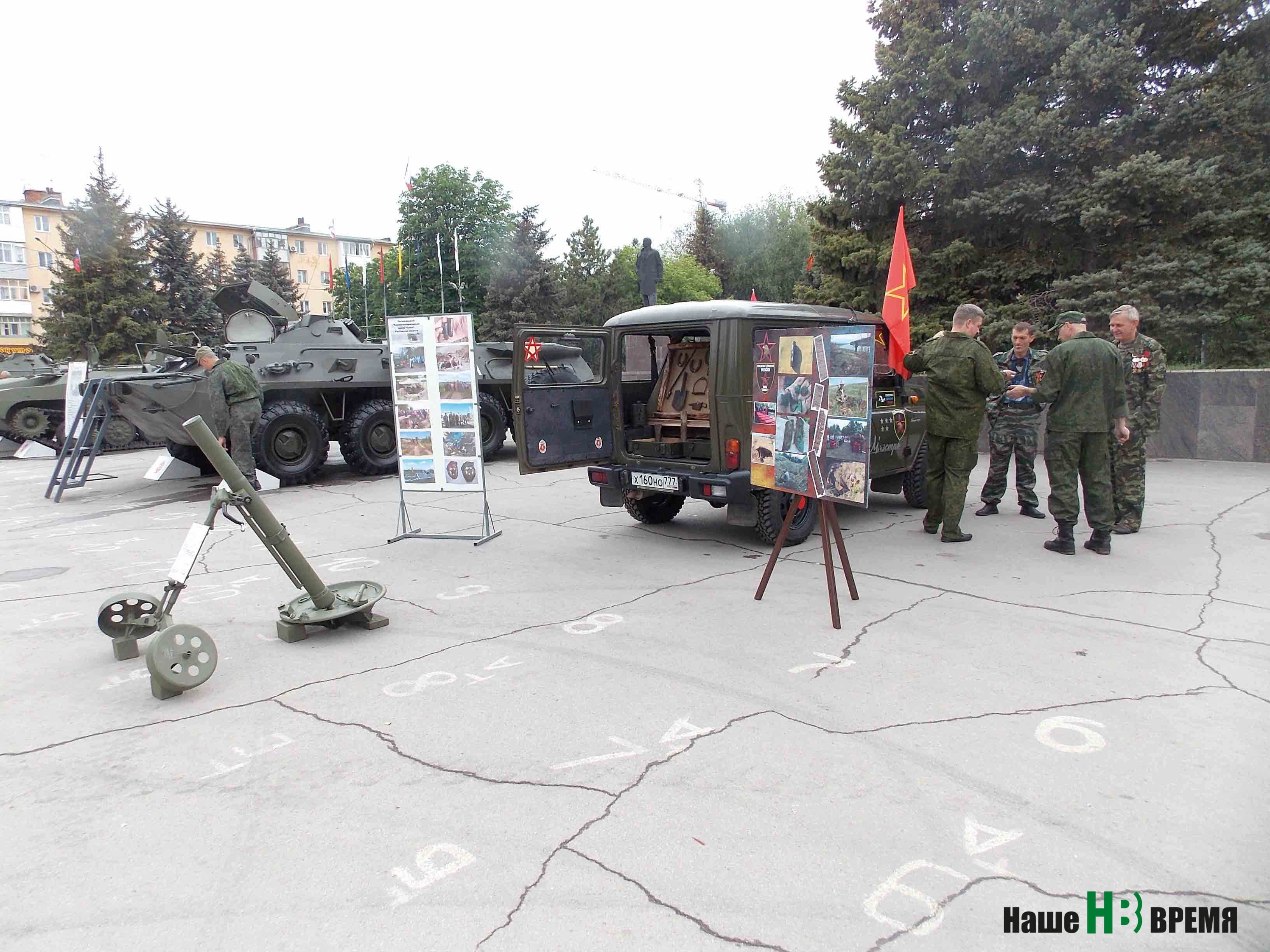На центральной площади Каменска-Шахтинского в День Победы рядом с боевой техникой, которую демонстрировали военнослужащие инженерных войск, работала передвижная выставка регионального военно-исторического центра «Поиск»