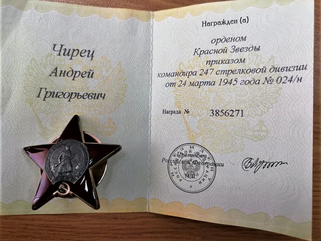 Андрей Григорьевич Чирец служил в 247-ой стрелковой дивизии. Свой подвиг совершил весной сорок пятого при форсировании Одера.