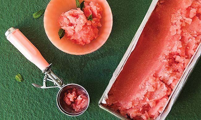 Освежающий арбузный сорбет, который очень понравится вашему ребенку, готов! Можно есть ложкой прямо из формы или разложить по креманкам при помощи ложки для мороженого, украсить листьями мяты, дольками клубники и удивить гостей.