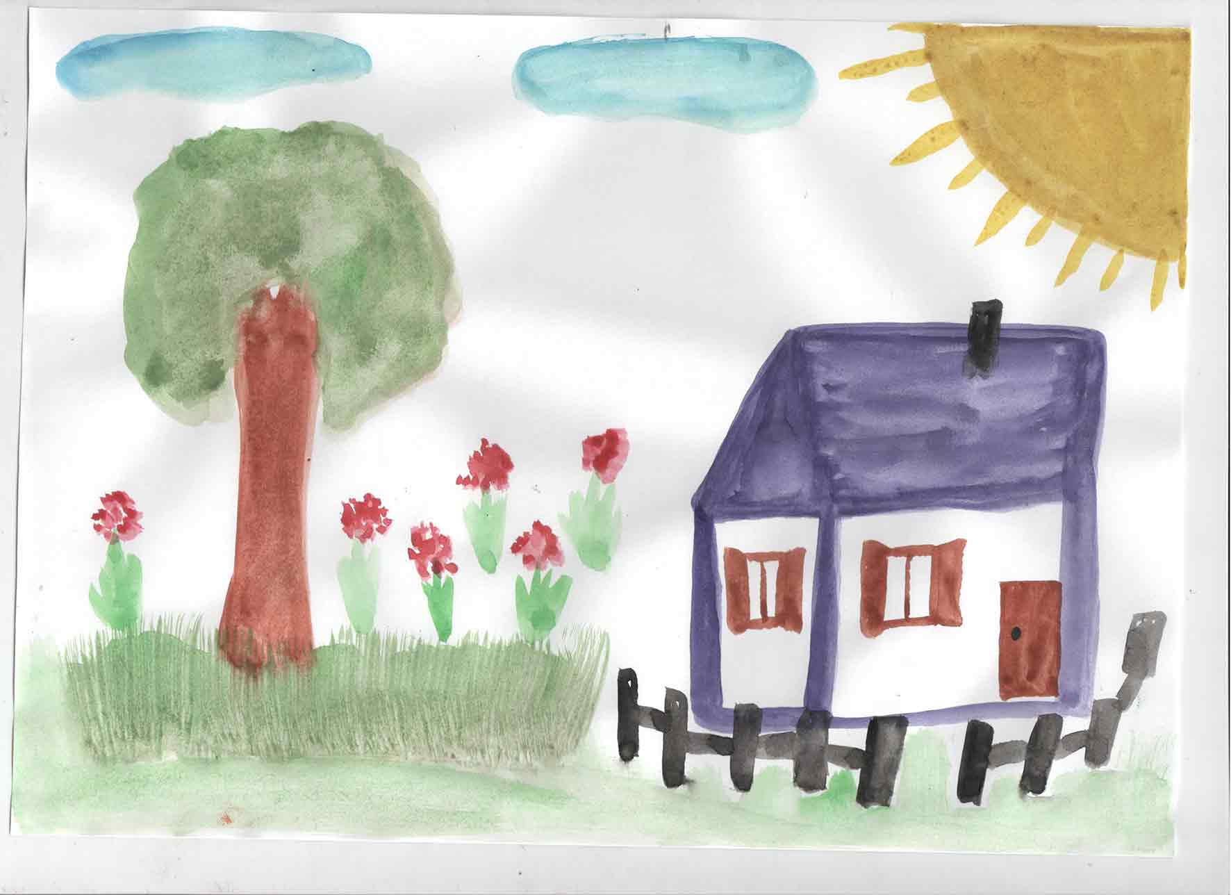 Это рисунок воспитанницы Песчанокопского социально-реабилитационного центра для несовершеннолетних восьмилетней Даши. Называется просто «Мой дом»…