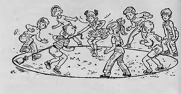 Взрослый берет в руки скакалку и крутит ее над самой землей вокруг себя. Игроки-рыбки прыгают, поднимая ноги так, чтобы «рыбак» не коснулся их «удочкой». Кого поймали, тот выбывает из игры/заменяет ведущего.