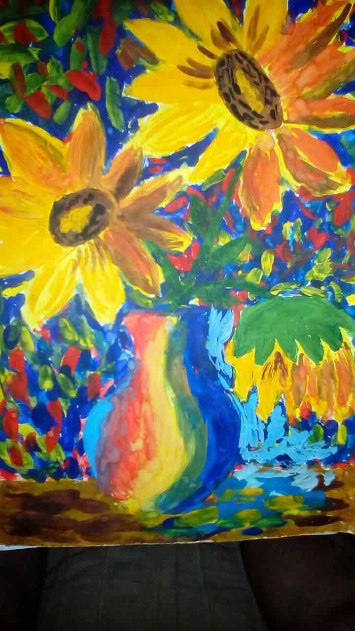 «Вдохновлялся Ван Гогом и летом. Лето – мое самое любимое время года. Хочется, чтобы оно скорее наступило. А подсолнухи похожи на маленькие солнышки», – рассказывает Никита.