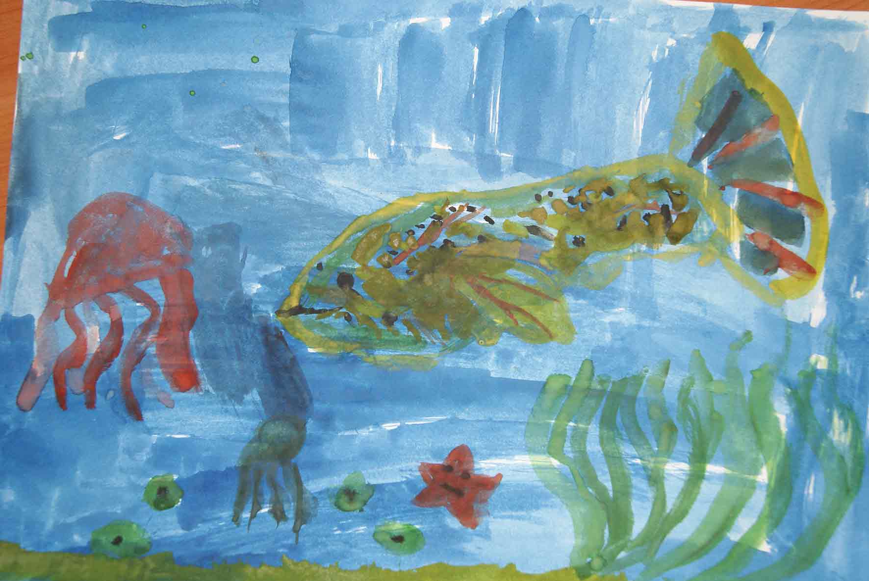 Шестилетняя Ксения СОРОКИНА из Ростова в этом году уже побывала на море, и оно оставило у нее массу впечатлений. Те-перь дома она часто рисует на морские темы. Бабушка прислала нам одно из ее творений.