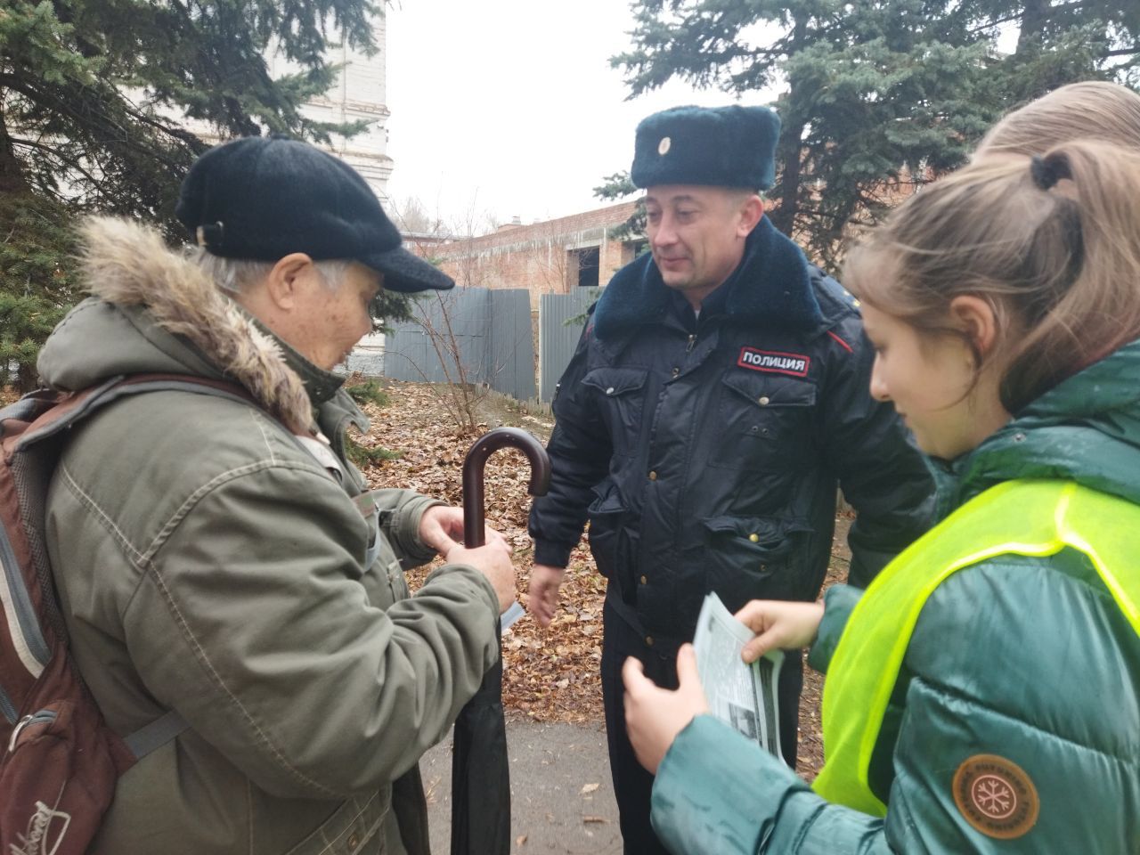 Пожилым участникам дорожного движения напомнили о необходимости соблюдения правил дорожного движения, разъяснили, как правильно и безопасно переходить дорогу, а также вручили им памятки по безопасности дорожного движения.