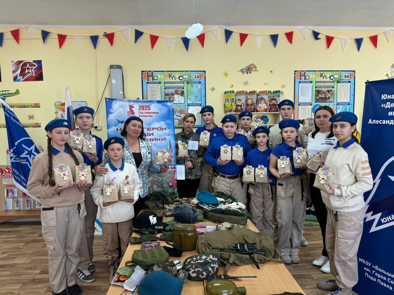 Хорошо знакомые читателям «Нашего времени» добрыми делами юнармейцы отряда «Донская Гвардия» Большекрепинской казачьей школы имени Героя Советского Союза П.А. Поды приняли участие в акции «Поздравь защитника».