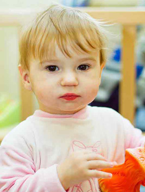 Полуторагодовалая Викочка — подвижная, послушная, внимательно слушает взрослых. Понимает обращенную к ней речь. Выполняет простые просьбы.