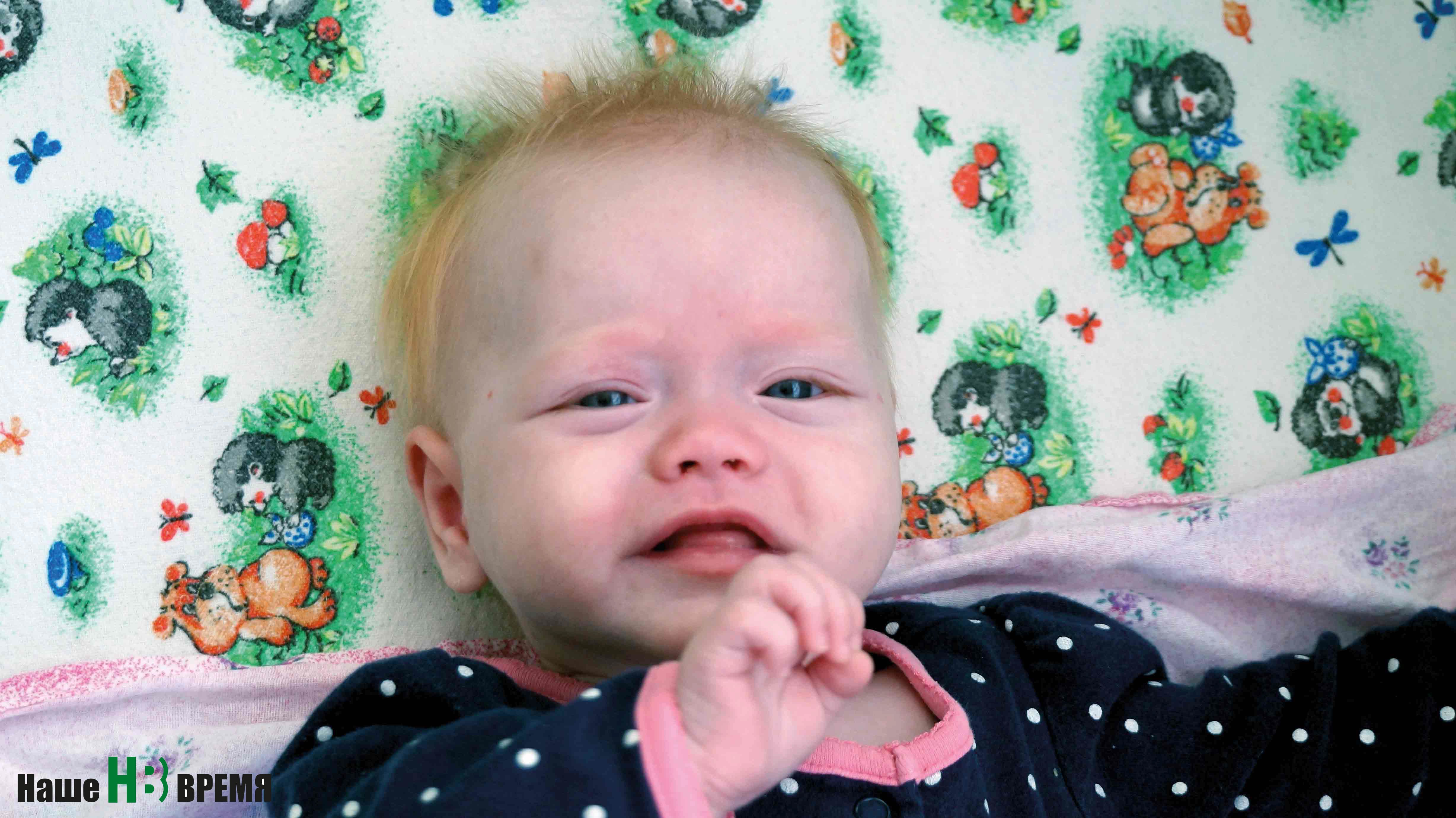 Крошке Катюшке – всего три месяца. Два из них она находится в доме ребенка. Катюша – спокойная, улыбчивая малышка. Уже умеет переворачиваться, тянется к игрушкам. Реагирует на обращенную к ней речь и сама любит поболтать – активно гулит. Хорошо кушает, спокойно спит. Развивается малышка согласно возрастным нормам.