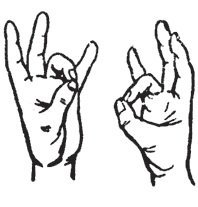 Методика исполнения: безымянный и большой пальцы соединяются подушечками с небольшим надавливанием. Оставшиеся пальцы выпрямлены. Выполняется обеими руками.