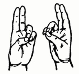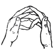 Выполнение: подушечки безымянного, мизинца и большого пальцев соединены вместе, а оставшиеся свободно выпрямлены. Выполняется обеими руками одновременно.