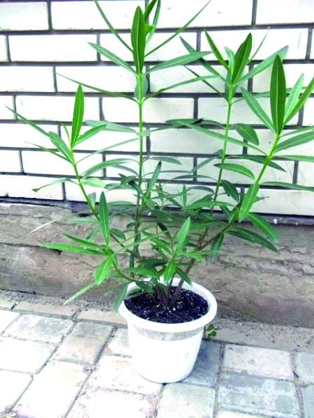 5. Олеандру 4 года. Большой, красивый, но… не цветет. Зимует при 12-15 градусах. Поливаю теплой водой. Летом выношу на солнце. Ни разу не обрезала - сам красиво разветвился. Один раз выпустил много бутонов, но распустился только один. Остальные завяли. В это время не переставляла с места на место, стоял у окна. Чуть притеняла, когда было слишком жарко. Объем деревянной кадки – литров 7-8. Дренаж - из пенопласта. Удобряю раз в 10-20 дней минеральными удобрениями. Вот такие у меня условия, а цветков все нет. Помогите разобраться…