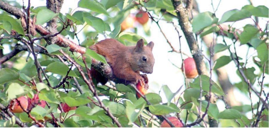 Выхожу в сад, а на абрикосе – белка! Я обомлела, стою, боясь шелохнуться, чтобы не спугнуть рыжую красавицу. Думала, она хочет полакомиться сочной мякотью плодов, но мякоть белочка отбросила, вгрызлась зубами в косточку, быстро добралась до ядрышка. Им и полакомилась. Потом проделала то же самое еще с несколькими абрикосами и ускакала.