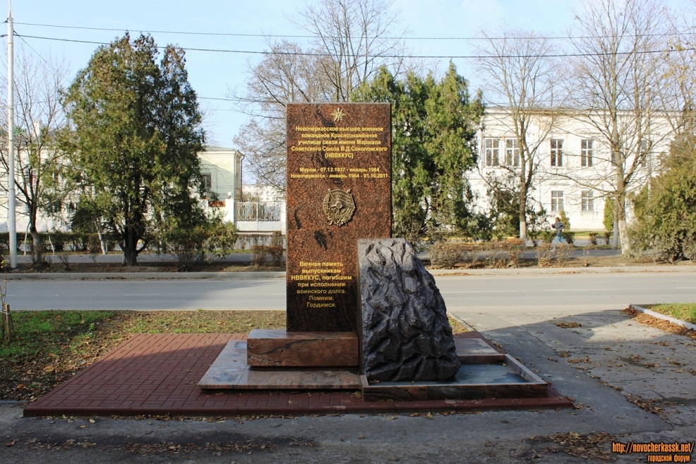 Памятная стела в честь Новочеркасского высшего военного командного училища связи. Источник фото: Денис Лагутин/novocherkassk.net