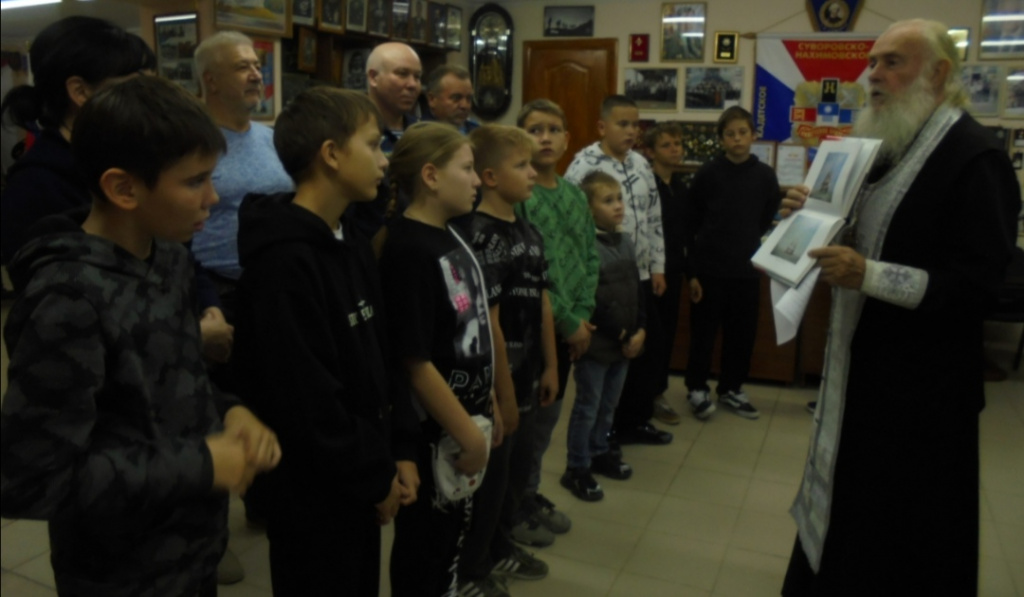 – В этот день в 1696 году, как известно, по настоянию Петра 1-го Боярская Дума приняла решение «морским судам быть», что стало началом создания регулярного русского флот, – рассказал отец Виталия. – «Урок мужества» мы провели для учеников СОШ №4 имени А. В. Суворова (классный руководитель Лариса Рыжак).