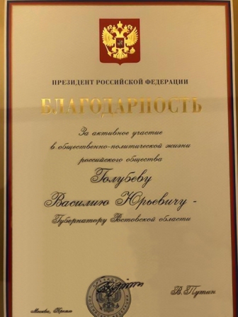 По информации пресс-службы главы региона, президентская благодарность была вручена губернатору Голубеву в ходе семинара-совещания. Он проходил в Светлогорске, Калининградской области в рамках подготовки расширенного заседания президиума Государственного совета. Оно начинает работу сегодня (31.10), и на нем будут обсуждаться очередные задачи регионов в сфере здравоохранения.