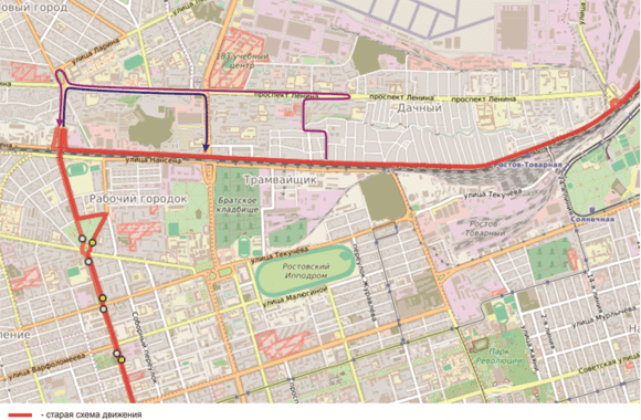 В обратном направлении автобусы, двигаясь по Нансена, будут поворачивать в переулок Казахстанский, затем на улицу Сельскую, переулок Автомобильный, затем по проспекту Ленина до проспекта Буденновского и далее по прежней схеме.