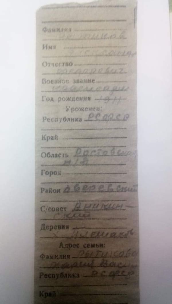 По информации поисковиков, потомки Александра Федоровича Рытикова, 1911 года рождения могут быть в Зверево или Белокалитвинском районе