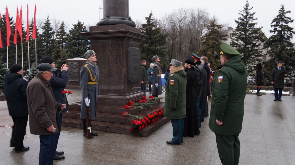 Торжественная церемония, посвященная Дню защитника Отечества, прошла сегодня у стелы «Ростов-на-Дону — город воинской славы» с участием губернатора Ростовской области