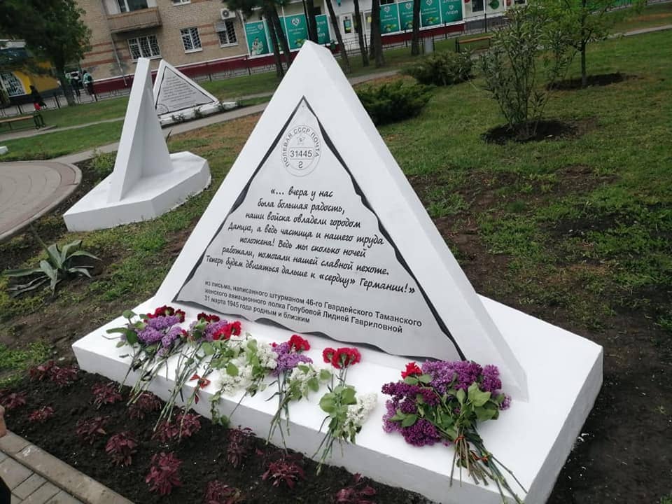 В Азове открыли памятную доску-реквием с фамилиями советских бойцов, погибших при освобождении города, а также мемориальный комплекс «Письма с фронта» - памятные знаки на площади Победы в виде солдатских треугольников.