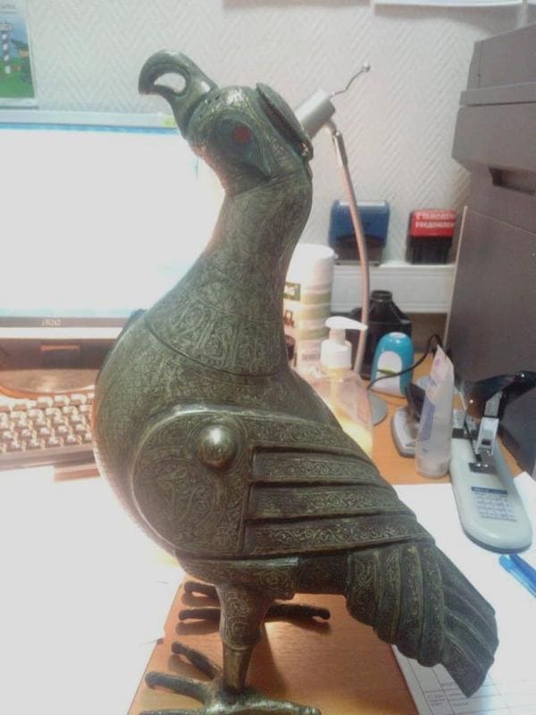 В посылках, адресованных в Испанию и США, находились сосуд, изготовленный в 19 веке в стилистики торевтики мамлюкских династий, а также сосуд для омовения рук — водолей.